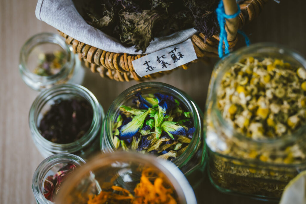 並べ終わった後はくるくると巻き付けて、蒸していきます。出来上がりを待つ時間は、香川さんの畑で採れたハーブティを。