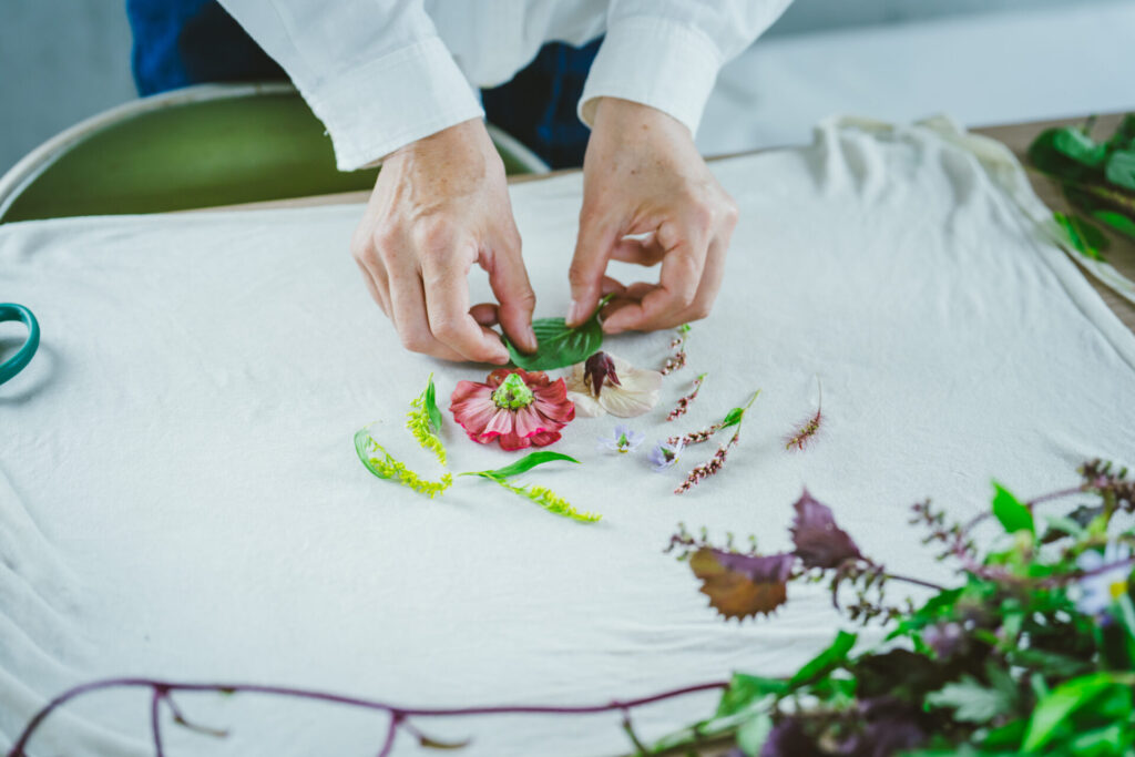 香川さんが用意したドライフラワーも含め、たくさんの草花から参加者のみなさんが思い思いに草花を選び並べていきます。