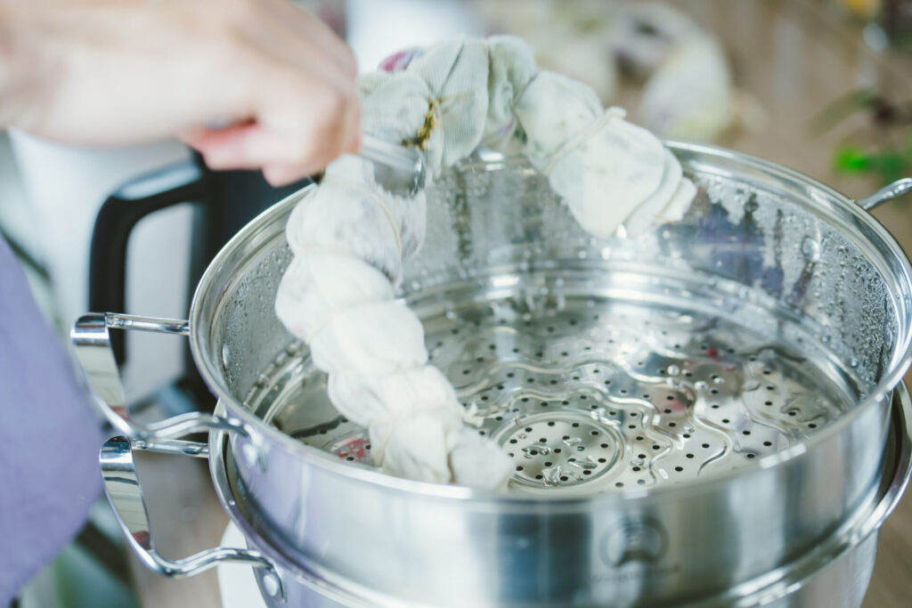 ここからは、布に色を染めていく時間です。クロスや枕カバーなどから染めたいものを選びます。