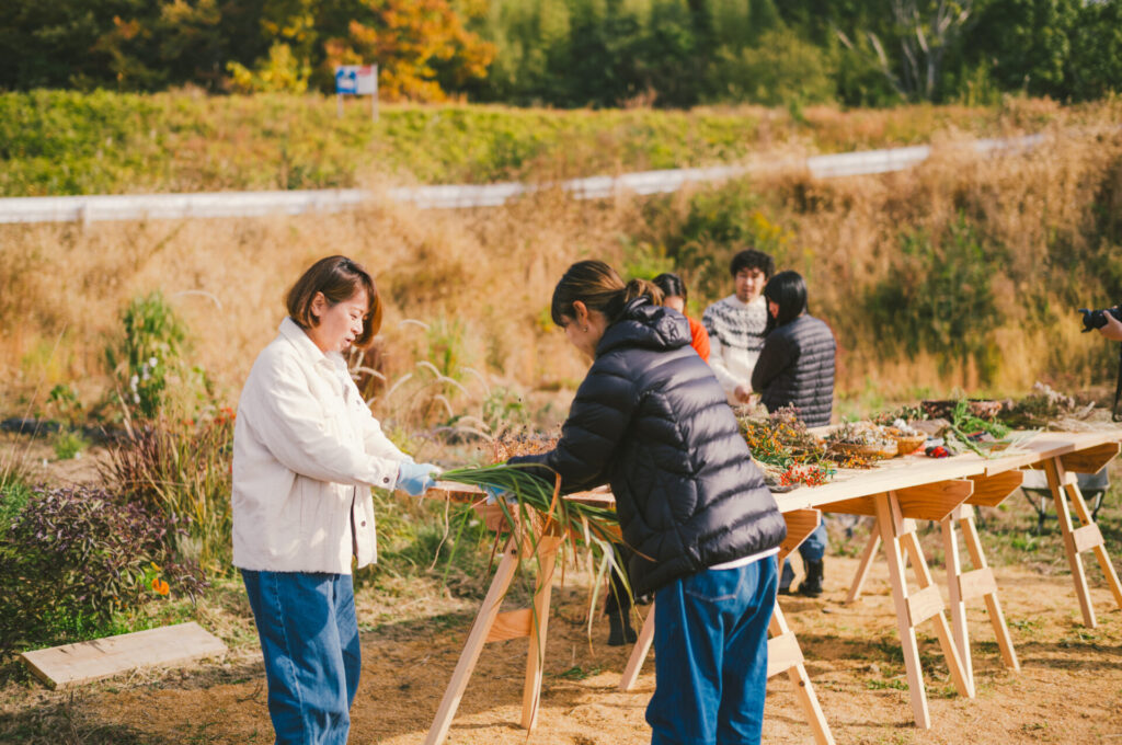 栽培した草花だけでなく、里山の自然の中にある野草も活用したい。そんな岡野さんの思いも込められていました。