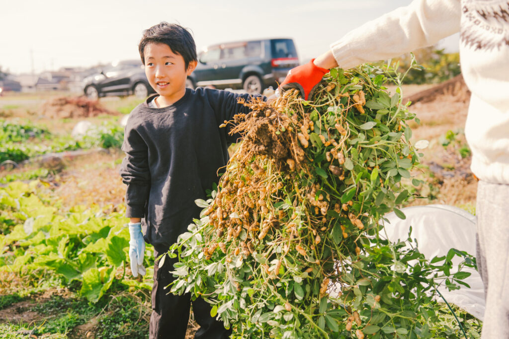 リース完成後は、落花生の収穫。「落花生ってこんな風に育つんですねー。」と興味深々でみなさん収穫されました。