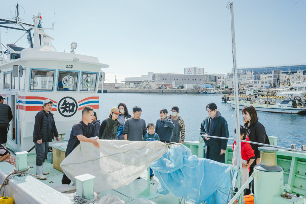 穏やかな気候に恵まれた11月下旬。潮の香りが広がる駒ヶ林漁港に参加者のみなさんが集まりました。コマハマ漁師組では普段からSNSで漁の様子などを発信されていて、今回のイベント募集も「すごく魅力的なイベントですね!参加します!」とすぐに反応してくれた方もいたそうです。