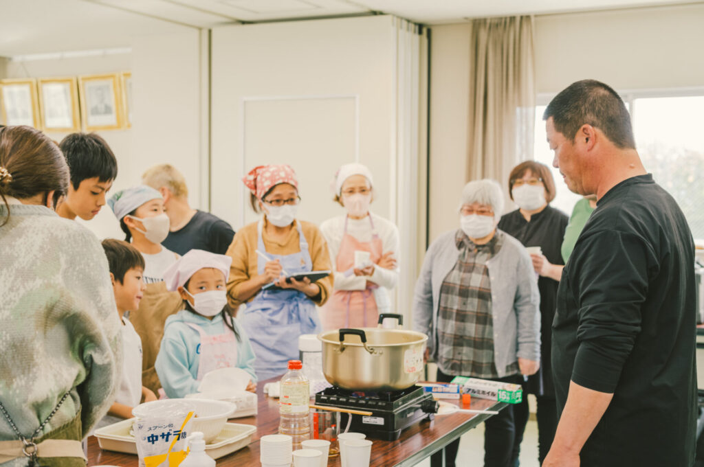 漁師の西村さんからイベント開始の挨拶です。今回は、当日、漁師のみなさんが獲った生のしらすを使うことができました。前日や当日の朝に、しらすが必ず獲れるとは限りません。新鮮な魚を使ってイベントを…というのも実は難しいのが自然相手の仕事です。