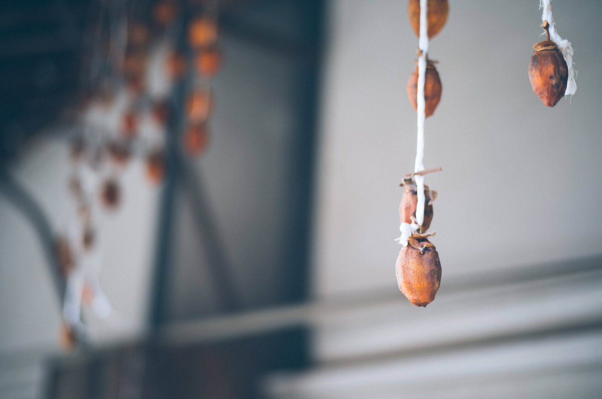 中庭に植わる柿の木で干し柿をつくったりも。春、夏、秋、冬、お正月…と地元の旬をいかにとりいれるか、辻野さんの料理を楽しみにしている人も多い。